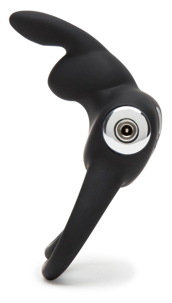 Comparte el placer con un anillo vibrador doble con estimulador en forma de conejo, flexible, potente y recargable.
