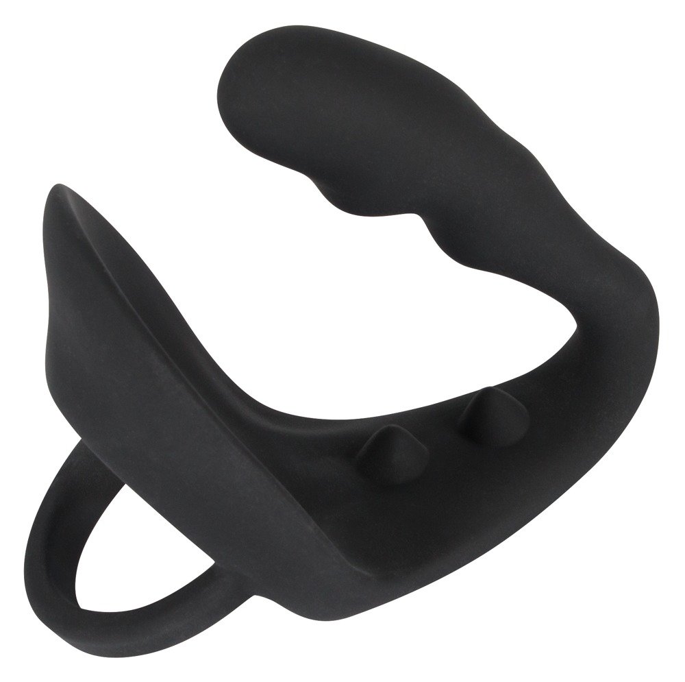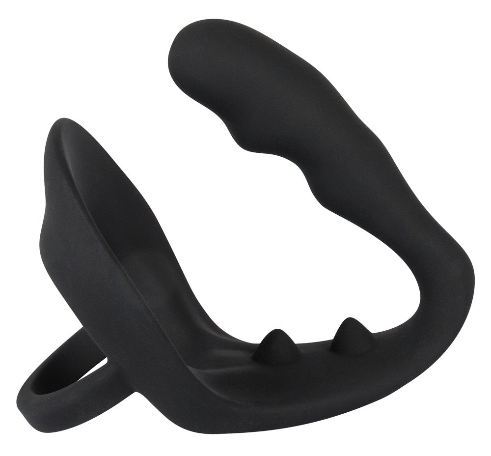 Anillo para pene y escroto, tapón anal y masajeador de perineo en una sola pieza.