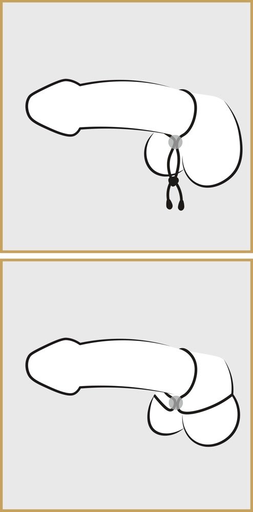 2. Pasa el bucle alrededor de la base del pene y, si prefieres, también alrededor de los testículos.