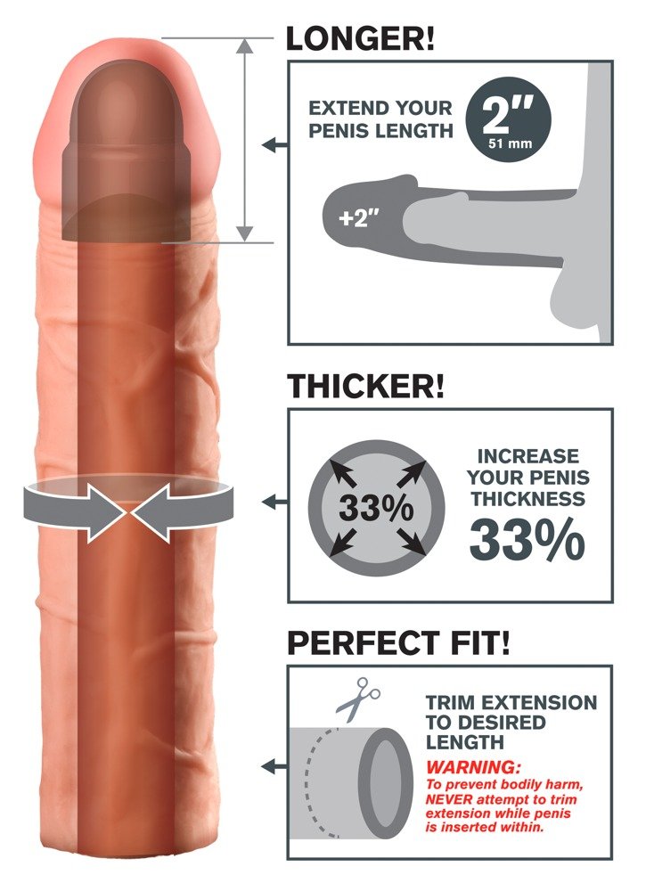 Aumenta el tamaño y la firmeza con una funda realista que añade 5,1 cm y refuerza cada movimiento.