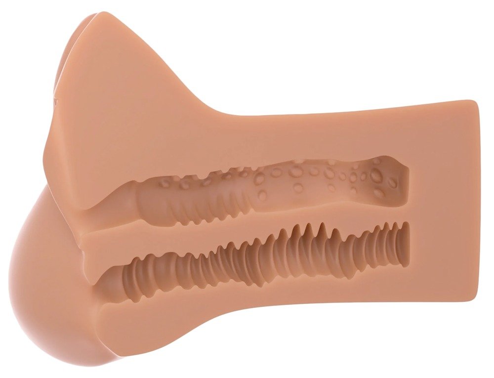 Dos túneles independientes con diseño de vagina y ano para experiencias variadas.