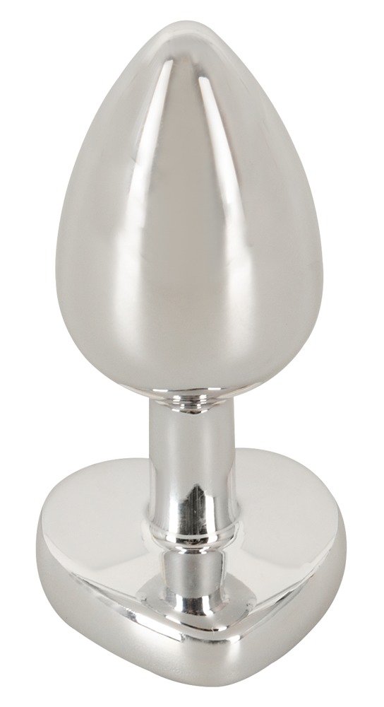Un toque de glamour y placer con este plug anal metálico cónico adornado con un corazón de piedra brillante.