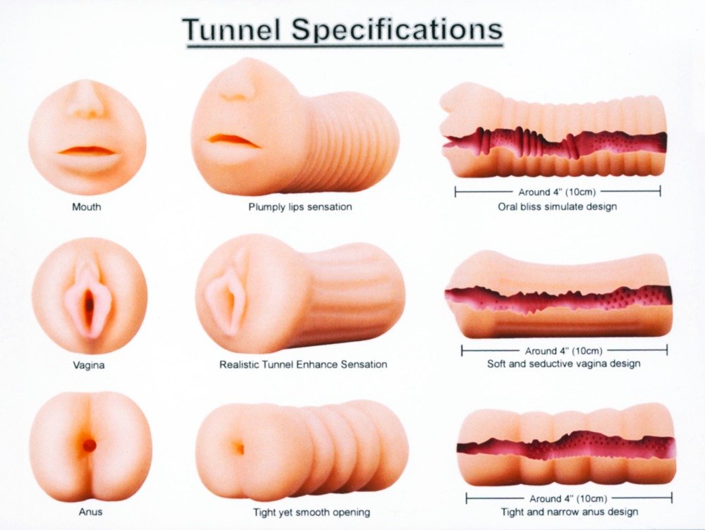 Incluye tres masturbadores con aberturas realistas: boca, vagina y ano.
