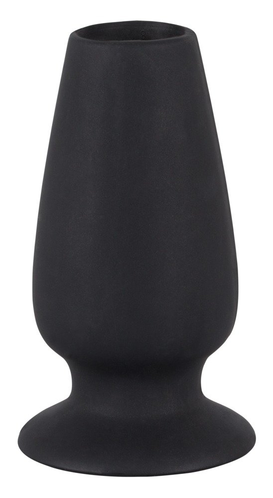 Tapón anal hueco de silicona con base segura y diseño versátil para juegos y estimulación.